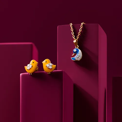 Add a touch of charm with the Sparkling Sparrow Diamond Pendant Set from Mahakali Jewellers.